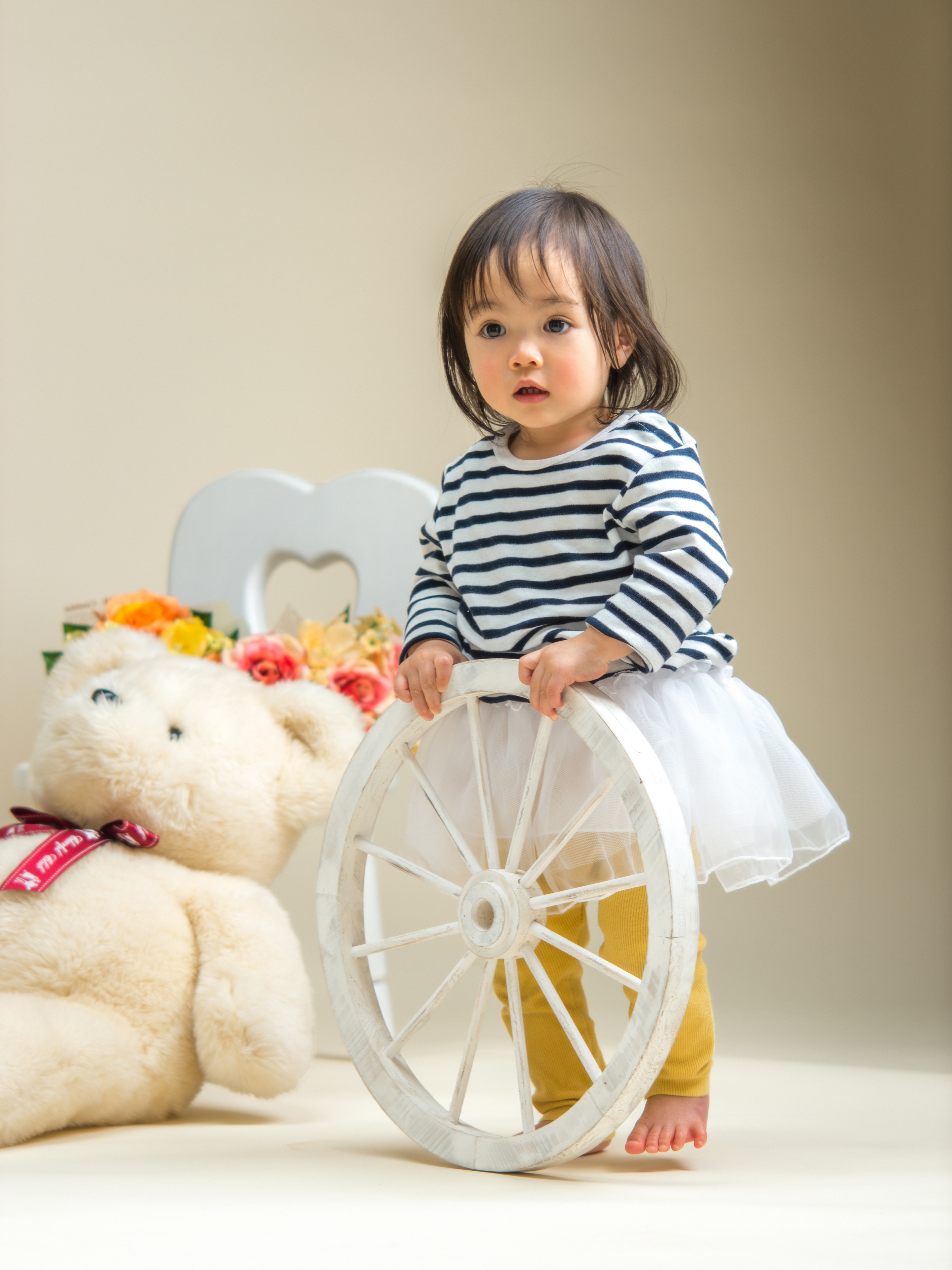 1歳のこの頃になると、つかまり立ちや歩いたりも出来る頃ですので、そんな姿も素敵ですよ。