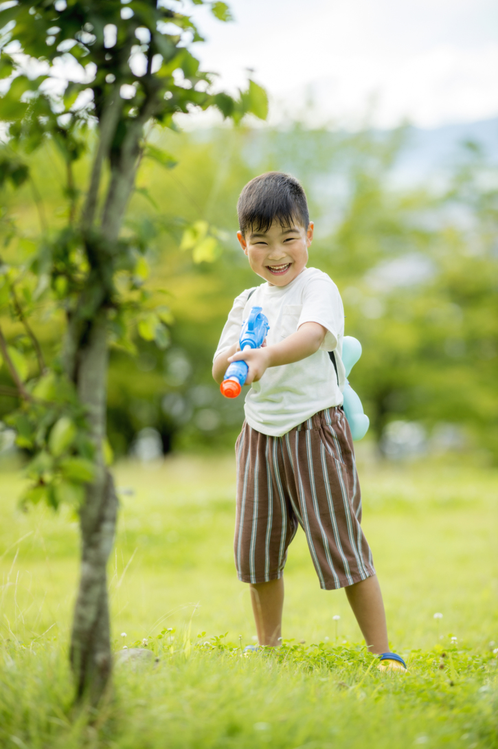 A : 年齢にもよりますが、夏らしい写真をコンセプトに樹木の育っている、緑の綺麗な公園をいくつかオススメしておりますが、公園やお気に入りの何気ない場所など、ご希望の場所がありましたら、ご相談くださいませ。